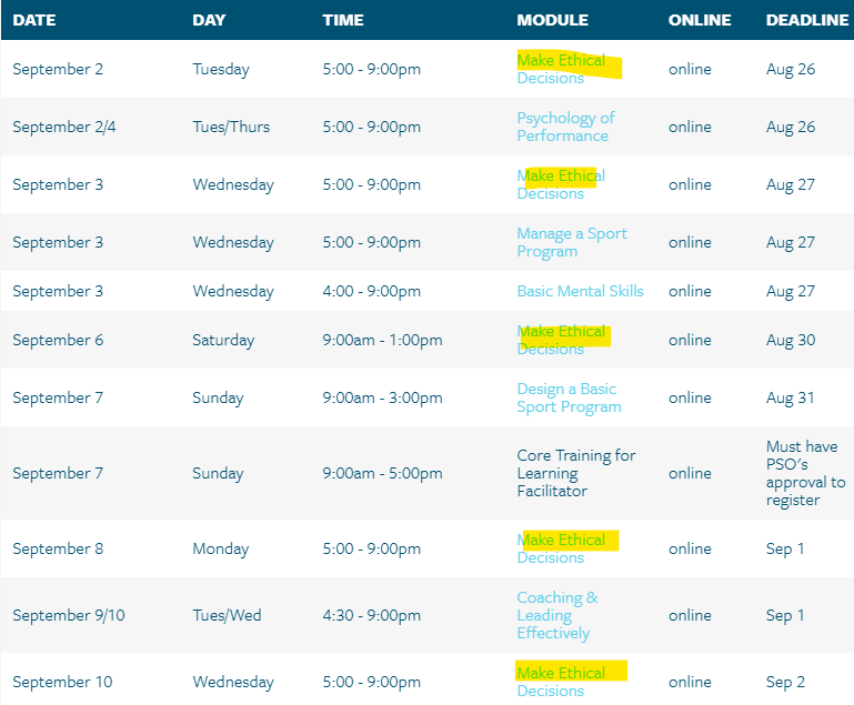 You can take this through Alberta Sport, the Coaching Association of Canada (CAC), or any other provincial sport body offering this (make sure it is NCCP content). Ringette Alberta is unable to approve any equivalencies, so if you feel you've taken something that correlates, you will need to contact the CAC for confirmation. Click here for a list and contacts for Provincial and Territorial Sport Organizations.